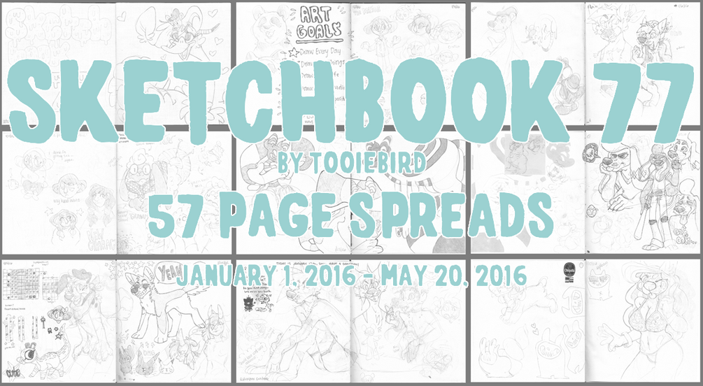 This is a link to my dropbox where you will find 57 .png images from Sketchbook 77. The images have only been edited to combine individual pages together to form the spreads and then cropped. Otherwise, the pages are exactly how you would see them in the sketchbook itself; good, bad, and ugly drawings are all included! (This book contains a lots of swearing, I'm sorry)