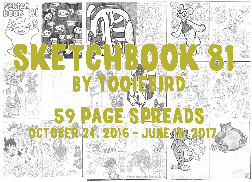 This is a link to my dropbox where you will find 59 .png images from Sketchbook 81 (2 pages per image). The images have only been edited to combine individual pages together to form the spreads and then cropped. Otherwise, the pages are exactly how you would see them in the sketchbook itself; good, bad, and ugly drawings are all included! (This book contains a few swear words and some boobs, I'm sorry)