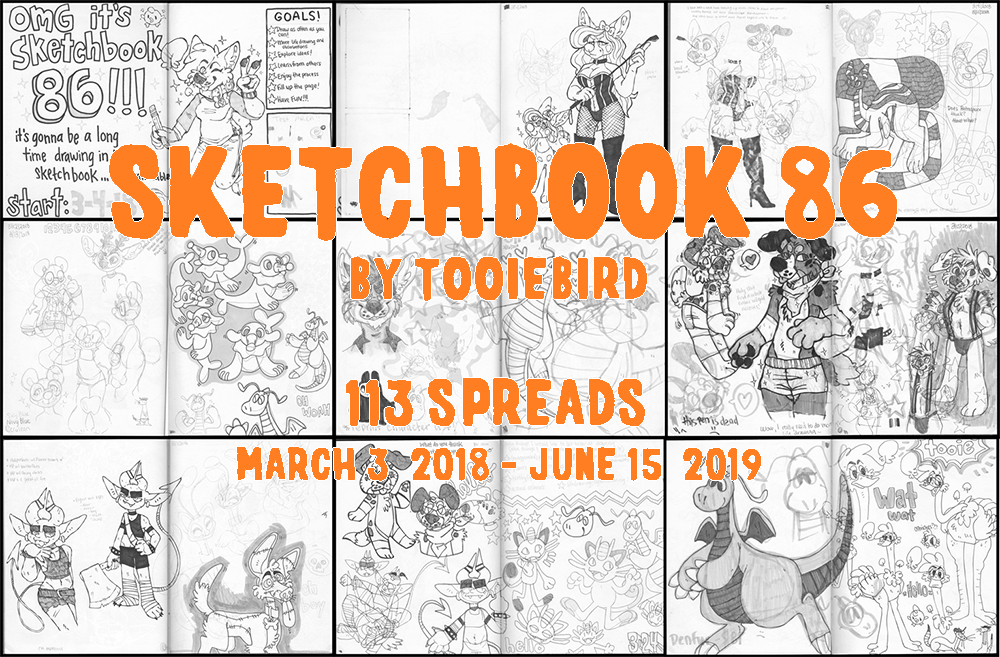 This is a link to my dropbox where you can find 113 .png images from Sketchbook 86 (2 pages per image, that’s 226 pages!!) The images have only been edited to combine individual pages together to form the spreads and then cropped. Otherwise, the pages are exactly how you would see them in the sketchbook itself; good, bad, and ugly drawings are all included! (This book contains a few swear words and naked animal people, I'm sorry)